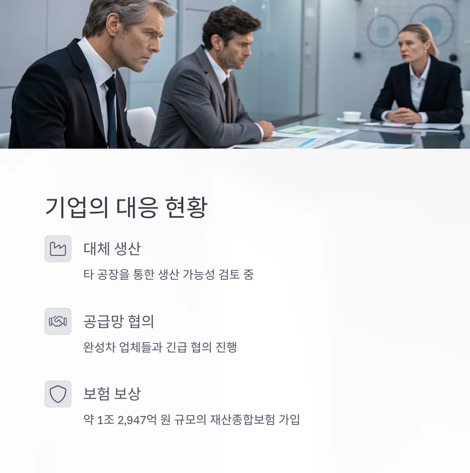 대응 현황: 보험 보상, 대체 생산, 공급망 협의