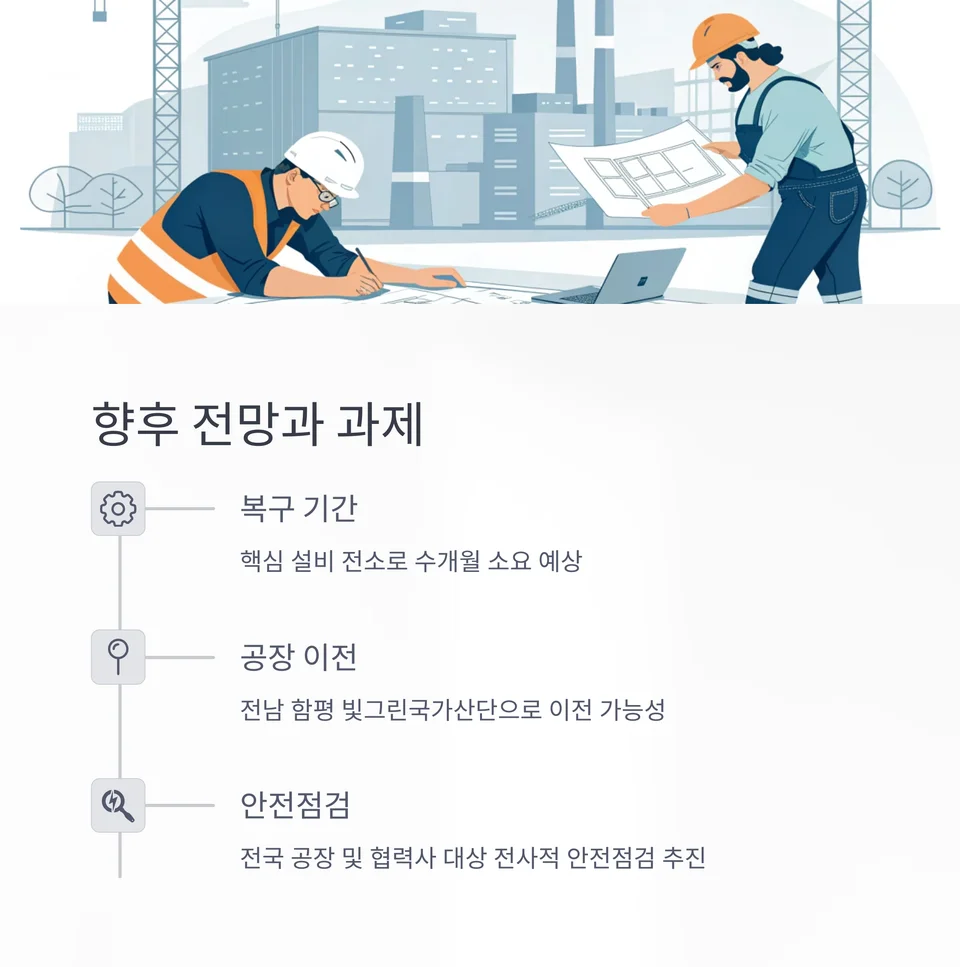 이 사고를 계기로 한국 제조업 전반의 공정 안전, 공급망 탄력성, 지방 균형 발전을