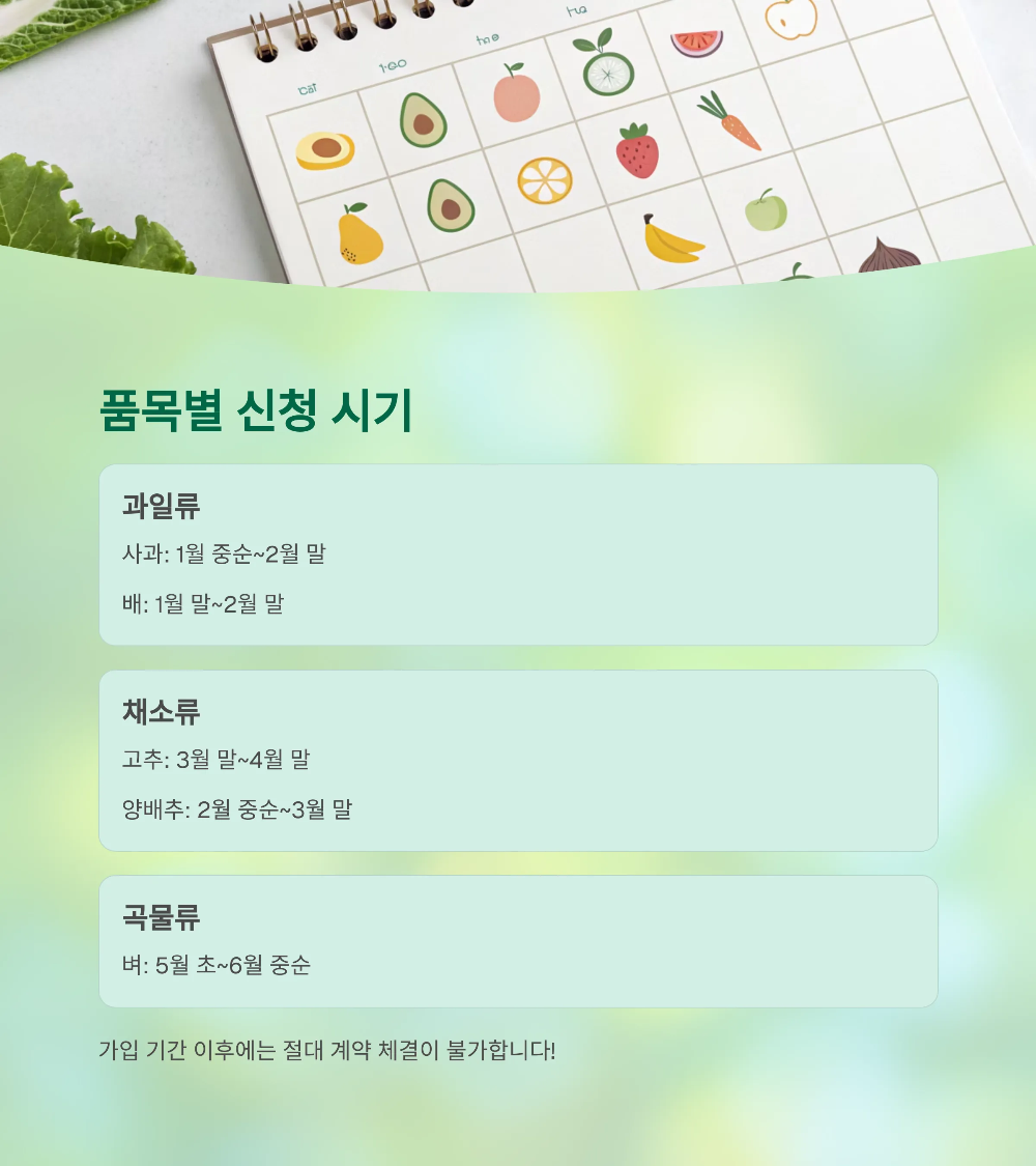 품목별로 정해진 신청 기간 내에만 가입이 가능하므로