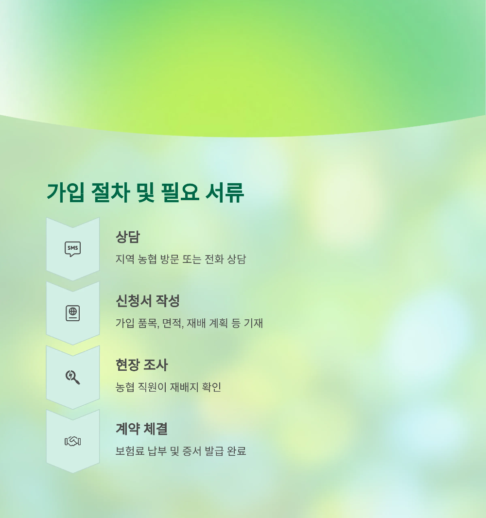 가입 시에는 본인 명의의 농지원부, 재배 확인 자료, 신분증이 필요하며,