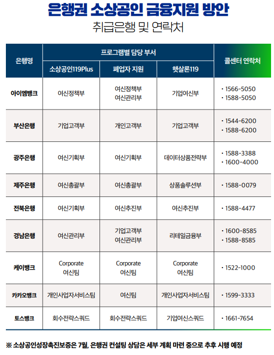 - 거래 은행에 방문해 "소상공인 119plus 신청" 요청