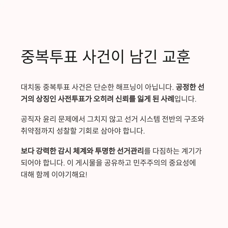 대치동 중복투표 사건은 선거 신뢰를 흔드는 중대한 사안입니다