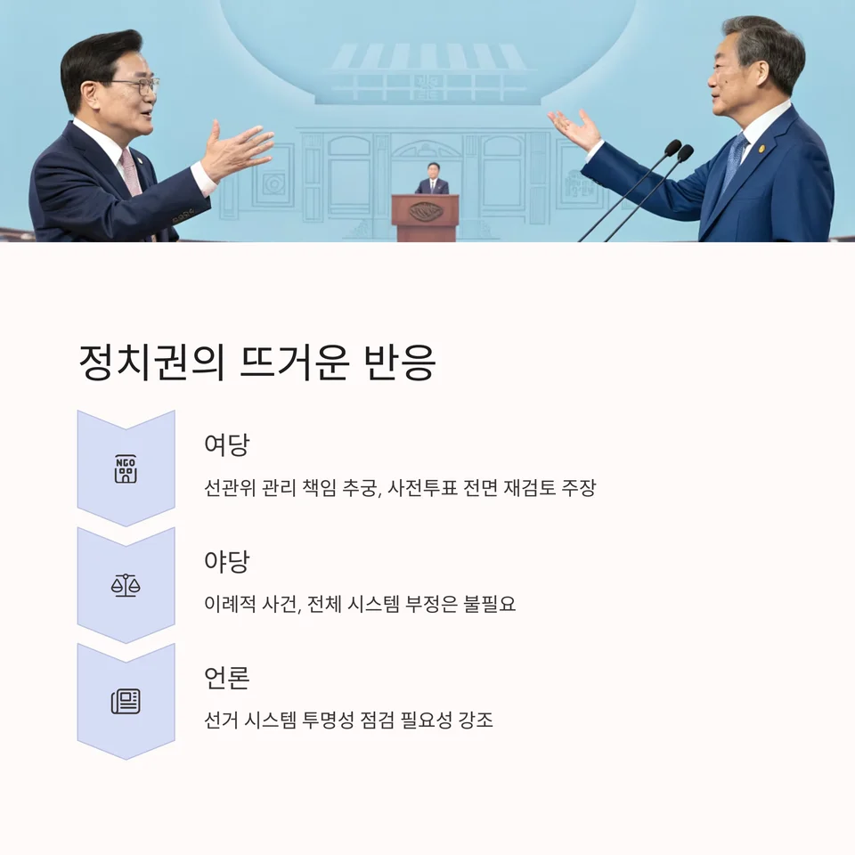 여당은 선관위의 관리 책임을 강하게 추궁하며