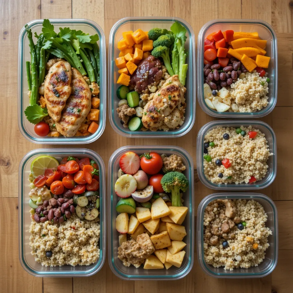 밀프렙을 실천하기 위해서는 구체적인 식단 계획이 필요합니다. 단백질과 저탄수화물을 포함한 밀프렙 식단으로는 닭가슴살, 브로콜리, 고구마를 활용할 수 있습니다. 예를 들어, 닭가슴살 100g, 브로콜리 50g, 고구마 100g을 한 끼로 구성하면 영양소 균형을 유지하면서 포만감을 높일 수 있습니다. 또 다른 예로는 연어 100g, 아스파라거스 50g, 현미밥 100g을 준비하면 단백질과 탄수화물을 효과적으로 조합할 수 있습니다. 고단백 저지방 식단으로는 두부 스테이크와 퀴노아를 활용할 수 있습니다. 두부 스테이크와 퀴노아 100g, 나물무침을 함께 섭취하면 맛과 영양을 모두 잡을 수 있습니다. 또한, 닭가슴살 샐러드에 병아리콩 50g을 추가하고, 발사믹 드레싱을 곁들이면 건강한 식사를 즐길 수 있습니다. 간단한 건강 간식으로는 삶은 달걀과 아몬드, 그릭 요거트와 블루베리 조합이 좋습니다. 이러한 간식들은 단백질과 건강한 지방이 풍부하여 식사 사이 허기를 줄이는 데 효과적입니다. 이처럼 다양한 밀프렙 메뉴를 활용하면 영양 균형을 유지하면서도 질리지 않고 건강한 식습관을 지속할 수 있습니다.