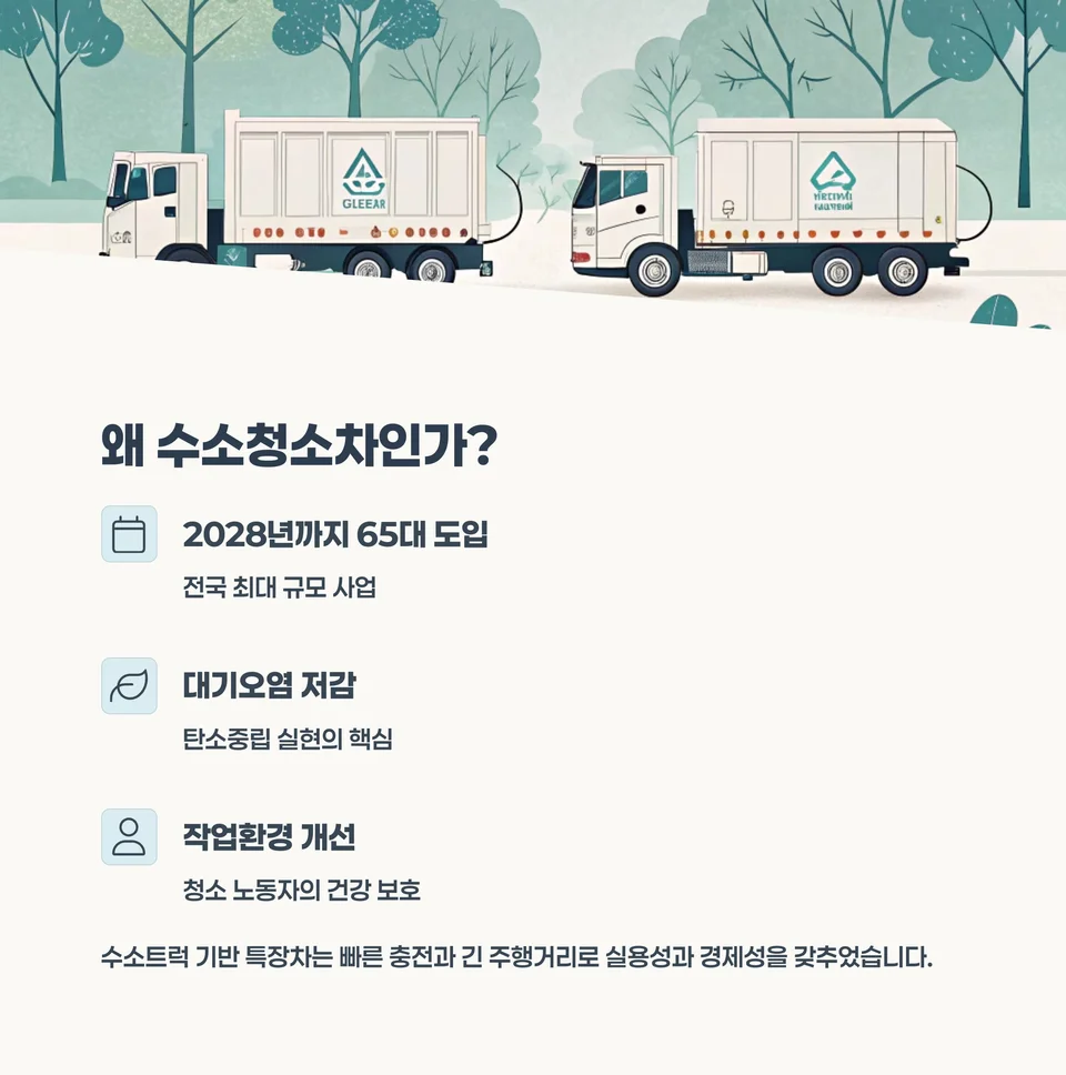 수소 기반의 청소차는 기존 경유차의 한계를 극복하며 지속가능한 도시로 나아가는 핵심 수단으로 주목받고 있습니다
