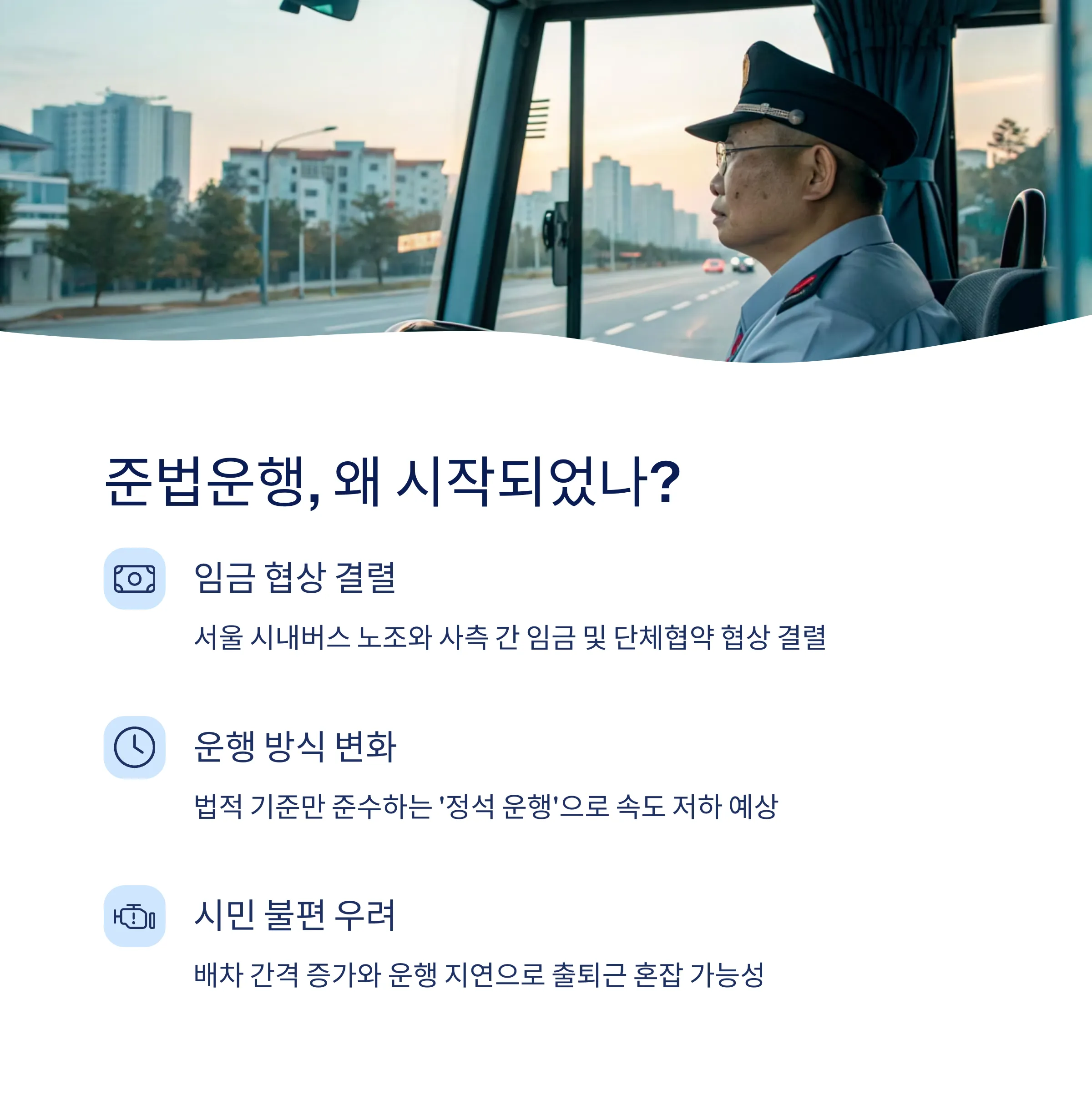 이번 글에서는 준법운행의 의미와 영향, 노사 갈등 배경, 서울시 대응, 그리고 향후 전망까지 상세히 살펴보겠습니다.