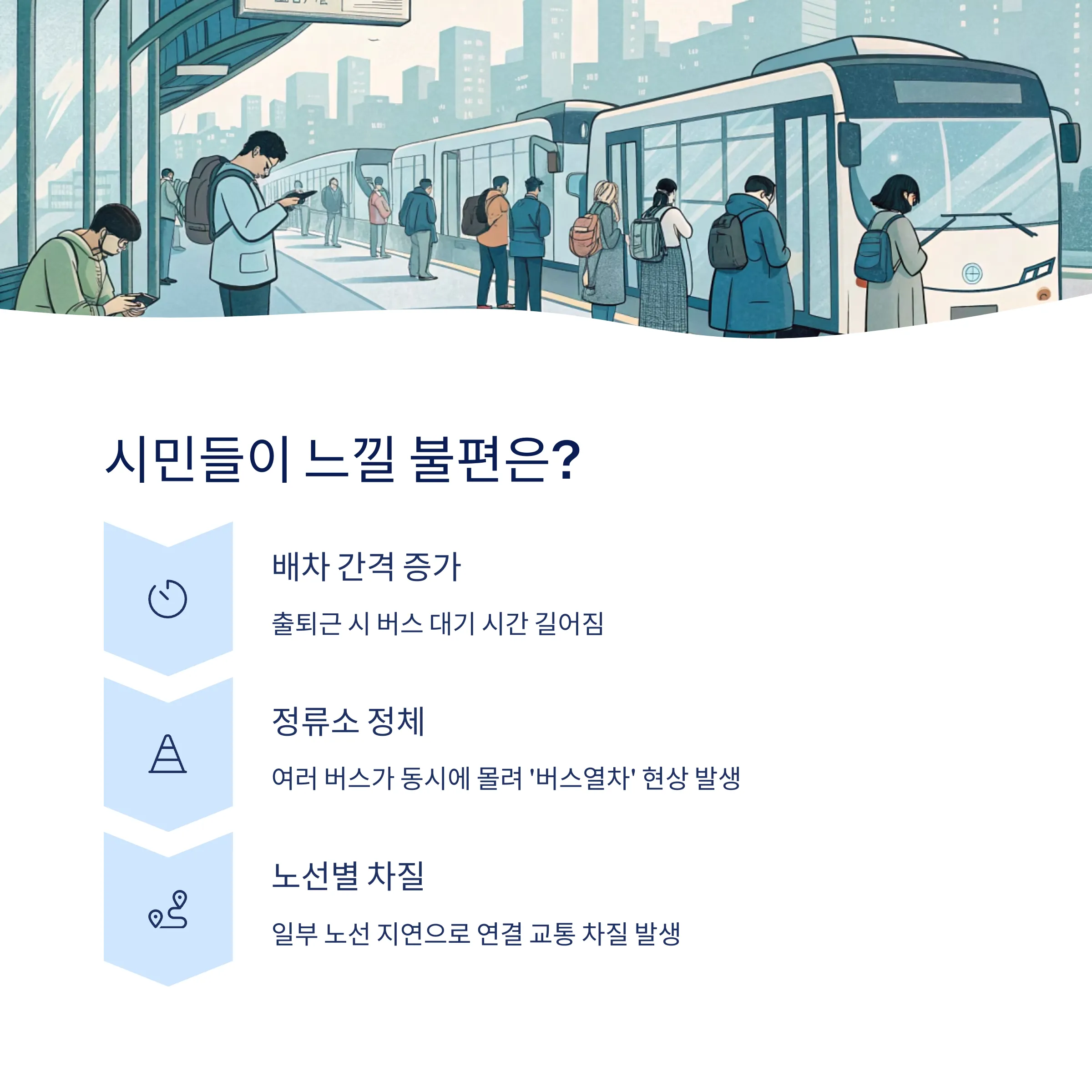 | 배차 간격 증가 | 출퇴근 시 버스 대기 시간 증가 |