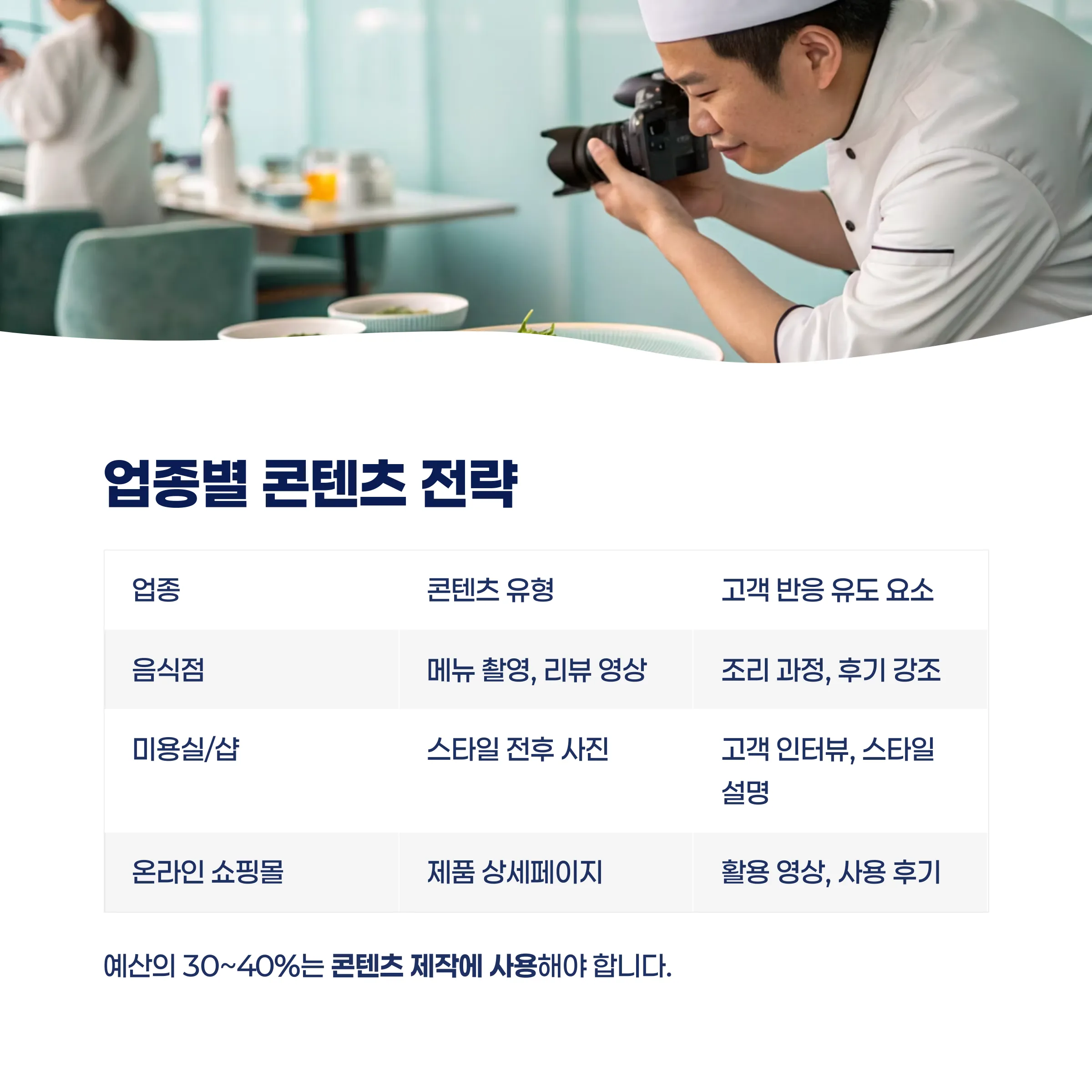 소상공인 업종에 맞는 핵심 콘텐츠는 다음과 같은 형식으로 구성할 수 있습니다: