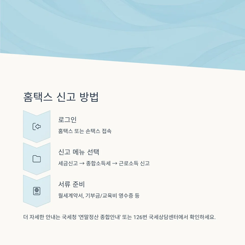 국세청 홈페이지 내 ‘연말정산 종합안내’ 페이지 또는 126번 국세상담센터를 통해 더욱 자세한 가이드를 확인할 수 있습니다.