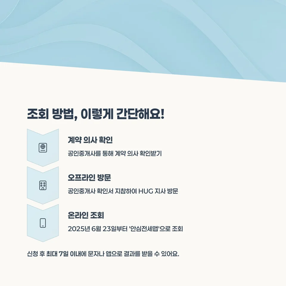 - 온라인(비대면): 2025년 6월 23일부터는 '안심전세앱'으로 조회 가능