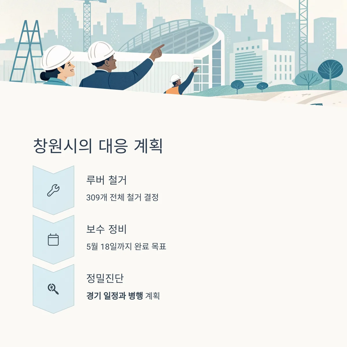 창원시는 루버 309개를 모두 철거하고, 5월 18일까지 보수 정비를 마무리하겠다고 밝혔습니다.