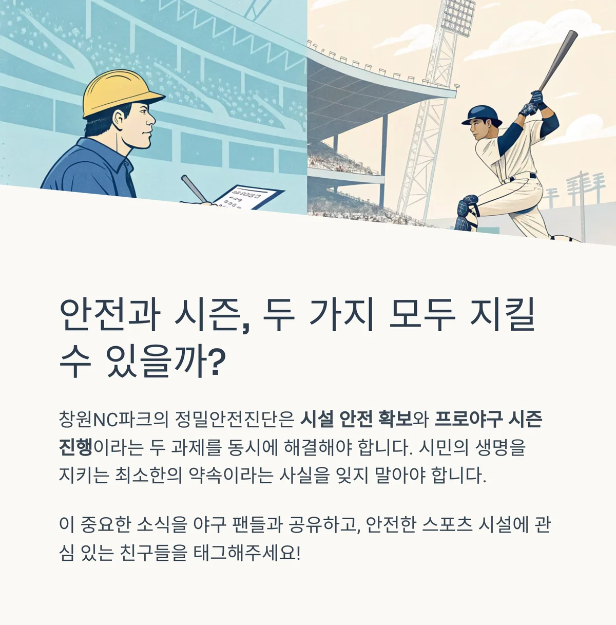 결국 창원NC파크의 정밀안전진단은 시설 안전 확보와 프로야구 시즌 진행이라는 두 과제를 동시에 풀어야 하는 시험대입니다.