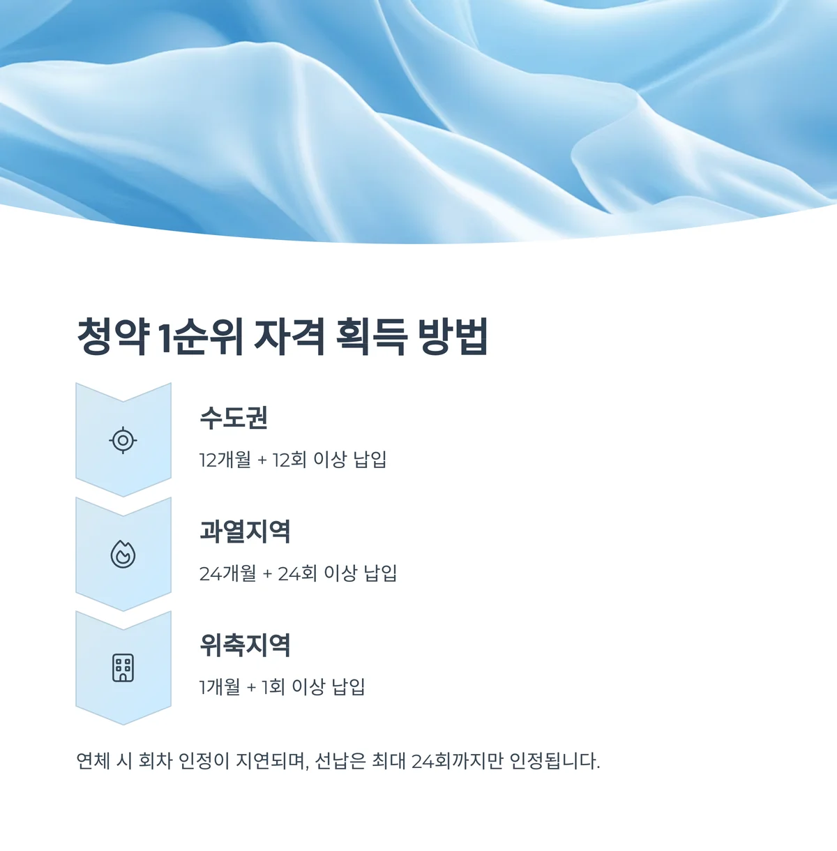 청약 1순위 자격은 지역별로 조건이 다릅니다.