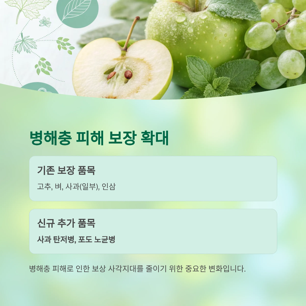 2025년에는 병해충 보장 품목이 기존 4개에서 6개로 확대되며,