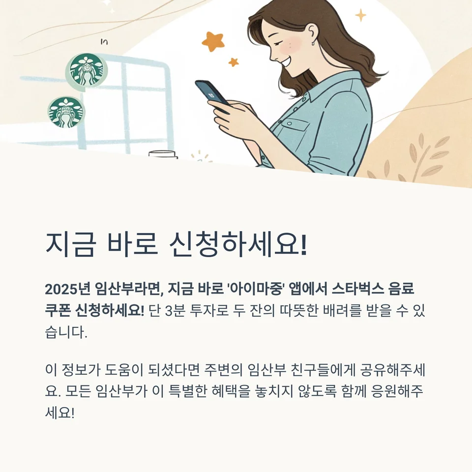 2025년 임산부라면, 지금 바로 ‘아이마중’ 앱에서 스타벅스 음료 쿠폰 신청하세요!