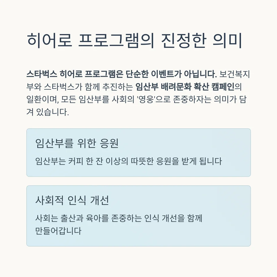 보건복지부와 스타벅스가 함께 추진하는 임산부 배려문화 확산 캠페인의 일환이며, 모든 임산부를 사회의 ‘영웅’으로 존중하자는 의미가 담겨 있습니다.