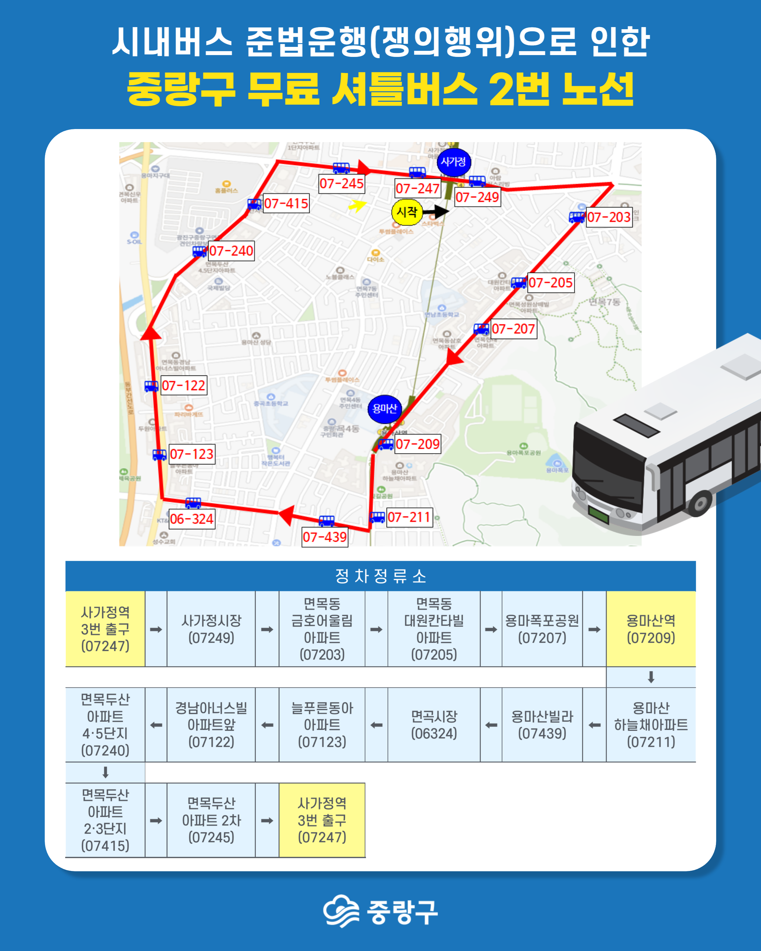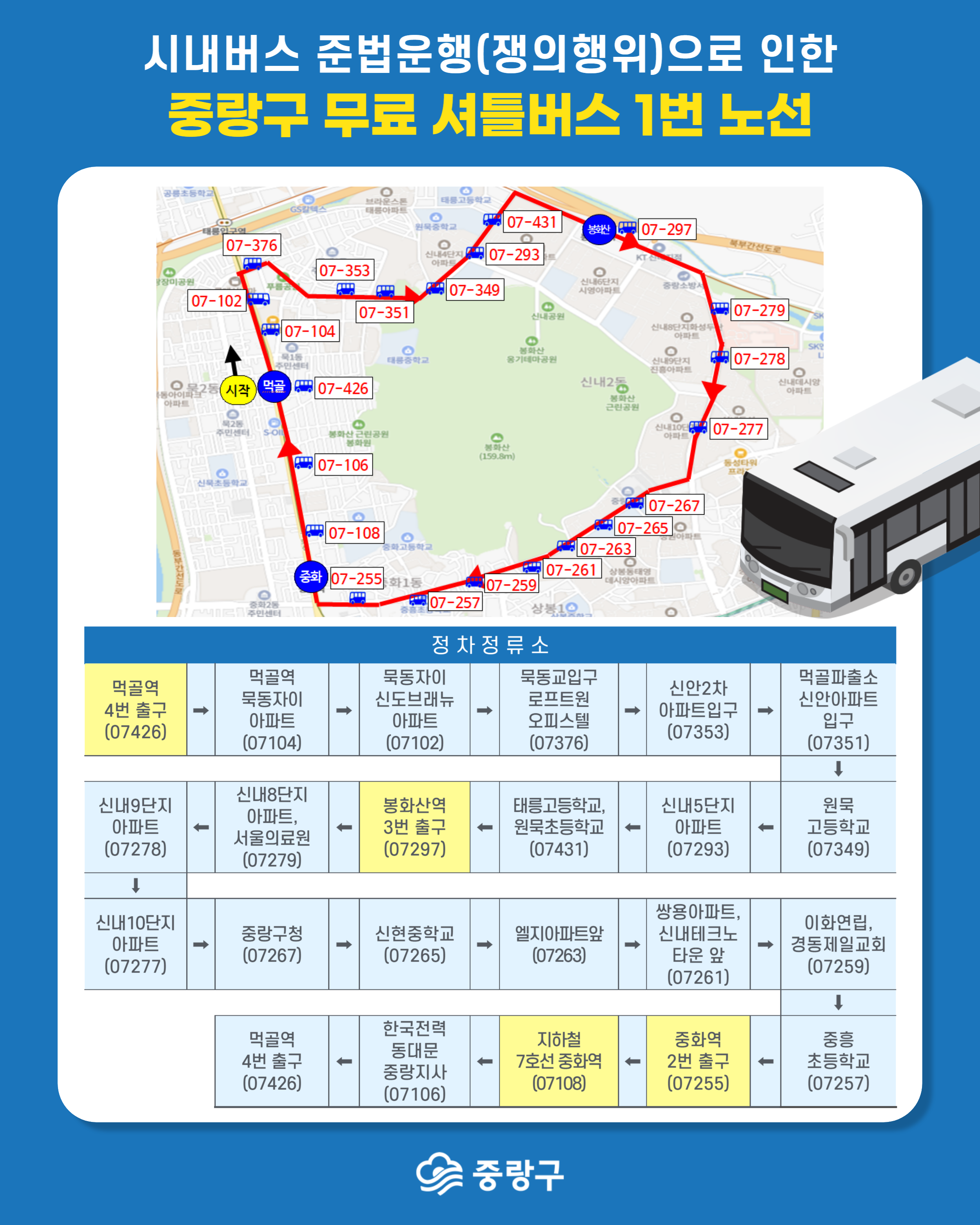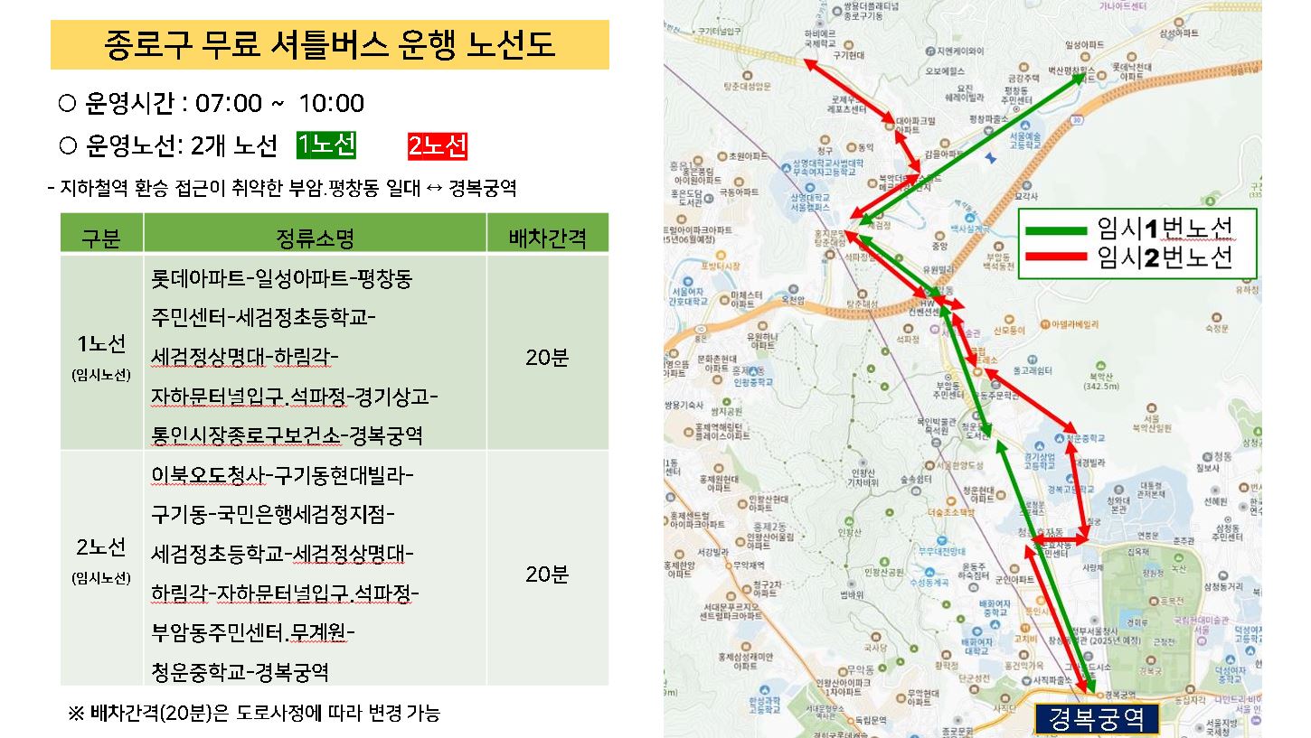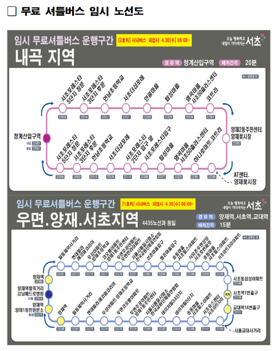 자치구별 무료 셔틀버스 노선 및 탑승 안내