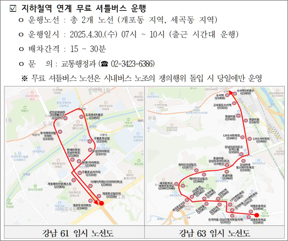 2025년 4월 30일 서울버스 파업 비상수송대책, 무료 셔틀버스 노선·시간표 정리