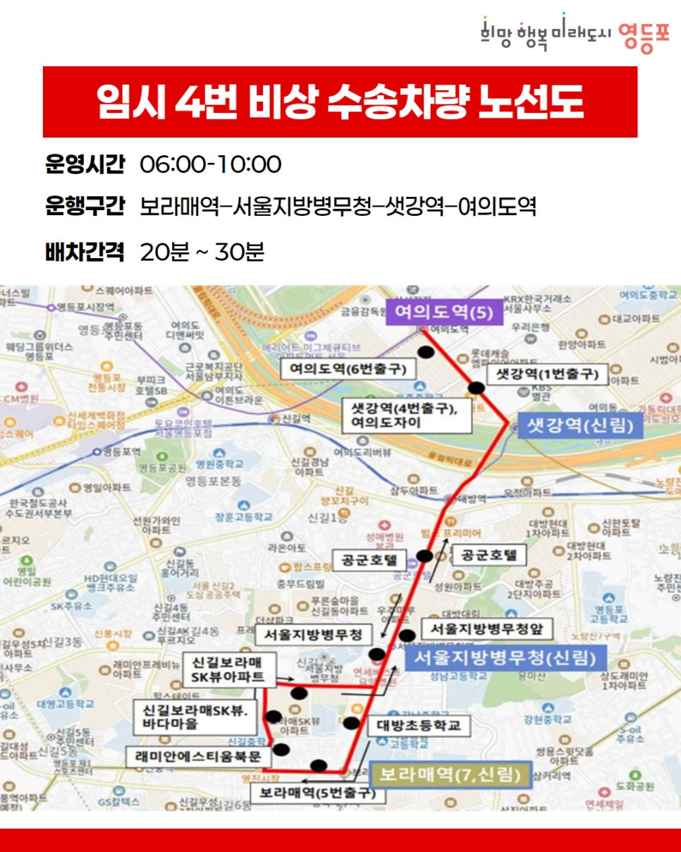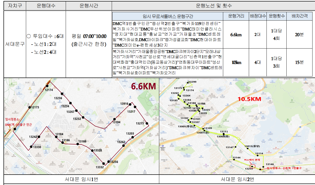 자치구별 무료 셔틀버스를 긴급 운행합니다.