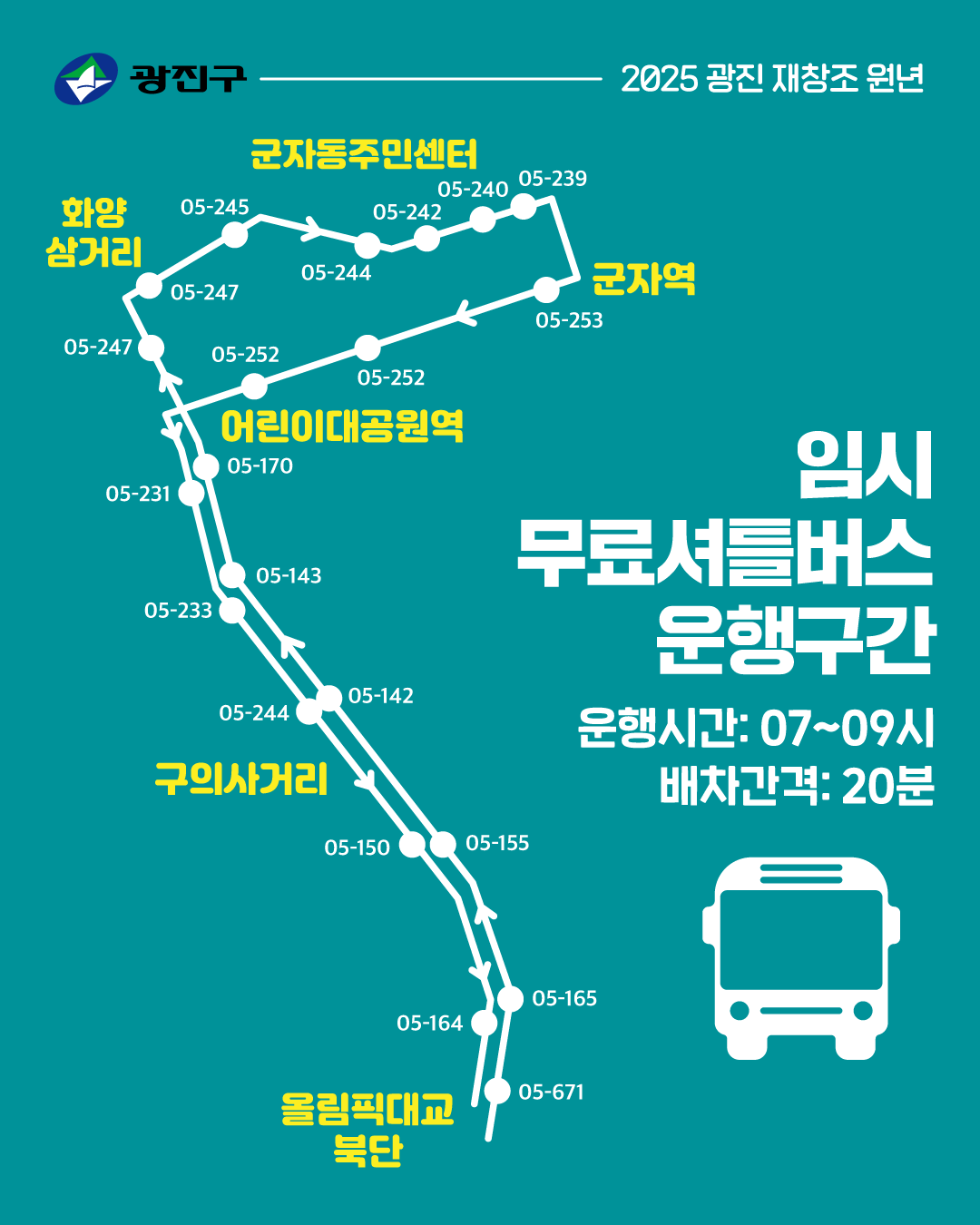 - 셔틀버스 노선 및 탑승위치는 변경될 수 있으니 출발 전 서울시 및 해당 자치구 공식 홈페이지를 꼭 확인하세요.
