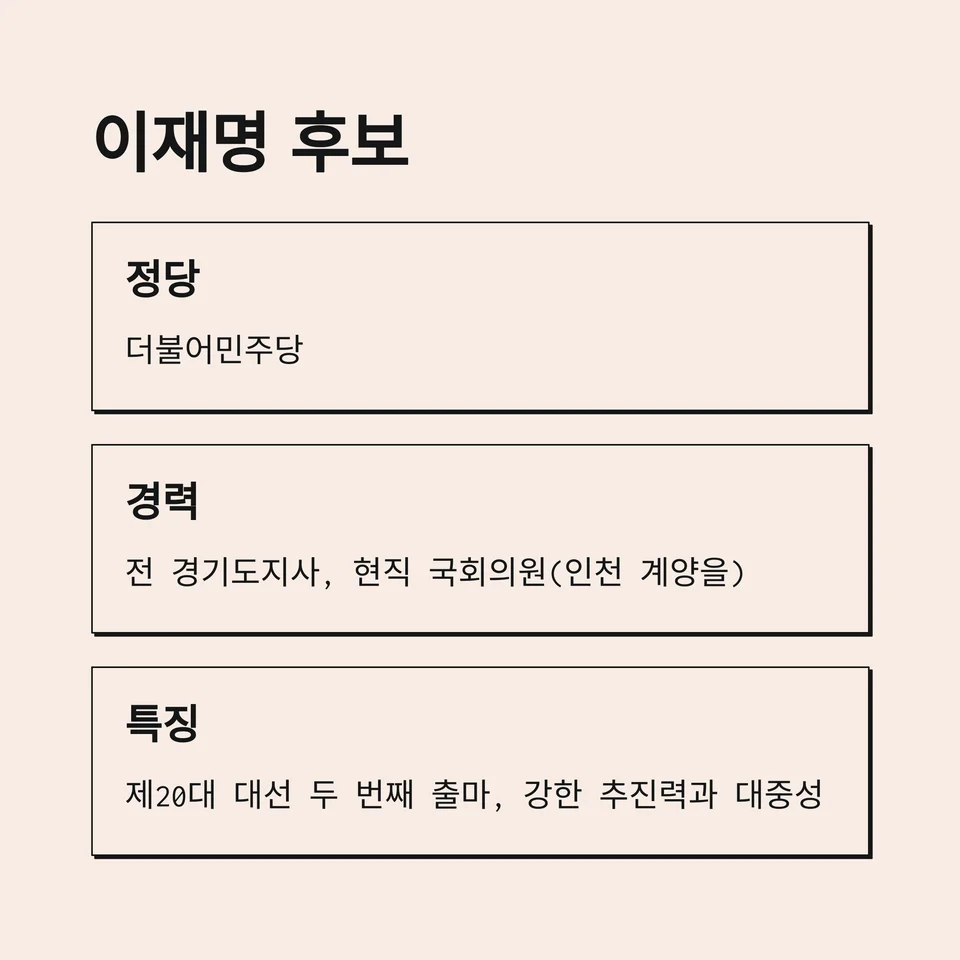 각 후보자들의 이력과 정치적 배경을 객관적으로 이해하고, 향후 발표될 정책과 입장을 비교해보며 합리적이고 책임 있는 선택을 준비해보시기 바랍니다.