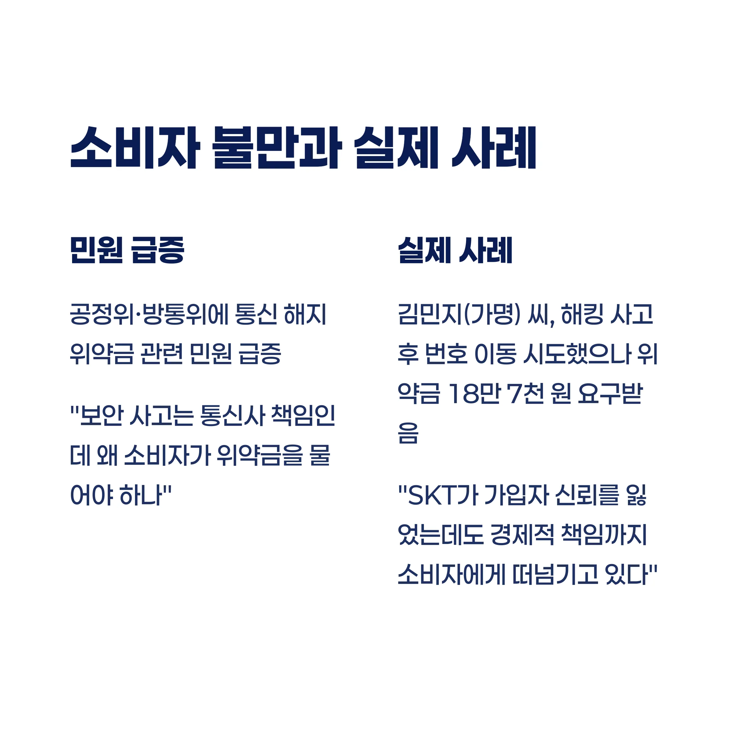 "보안 사고는 통신사의 책임인데 왜 소비자가 위약금을 물어야 하냐"는 주장입니다.