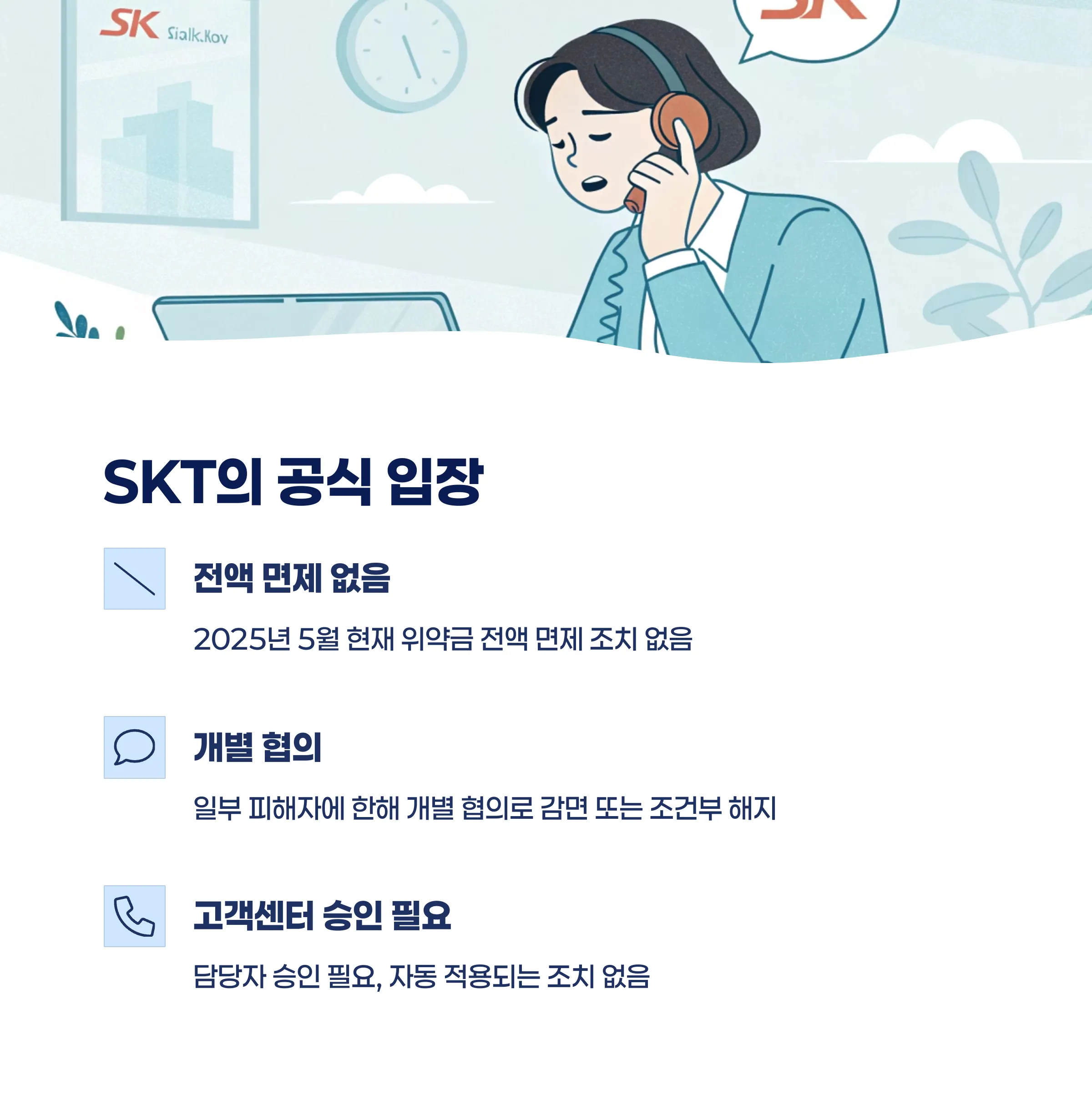 SKT 고객센터와의 통화 후 담당자의 승인을 받아야 가능하며, 전체 고객을 대상으로 자동 적용되는 조치는 없습니다.