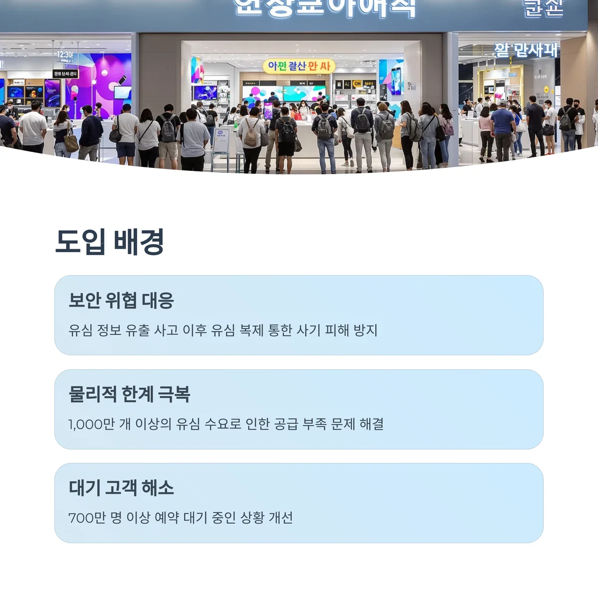 또한, 약 1,000만 개 이상의 유심 수요가 한꺼번에 발생하면서, 물리적 유심 부족이라는 현실적 문제도 함께 고려된 조치입니다.