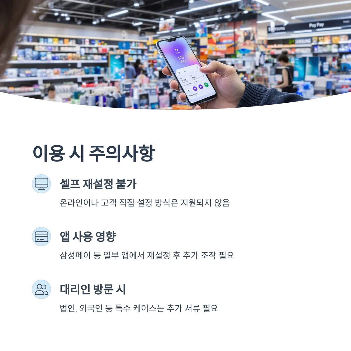 한 가지 주의할 점은 일부 단말기에서 삼성페이와 같은 앱 사용 시, 재설정 후 약간의 추가 조작이 필요할 수 있다는 것입니다.