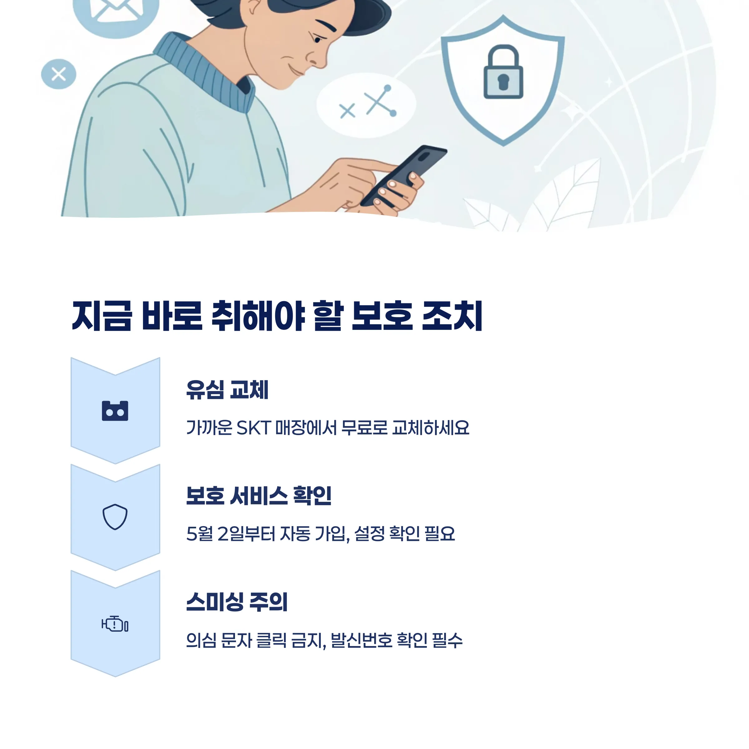 2025년 5월 2일부터는 ‘유심 보호 서비스’ 자동 가입이 시작되어, 유심 복제를 원천적으로 차단하는 기능이 적용됩니다.