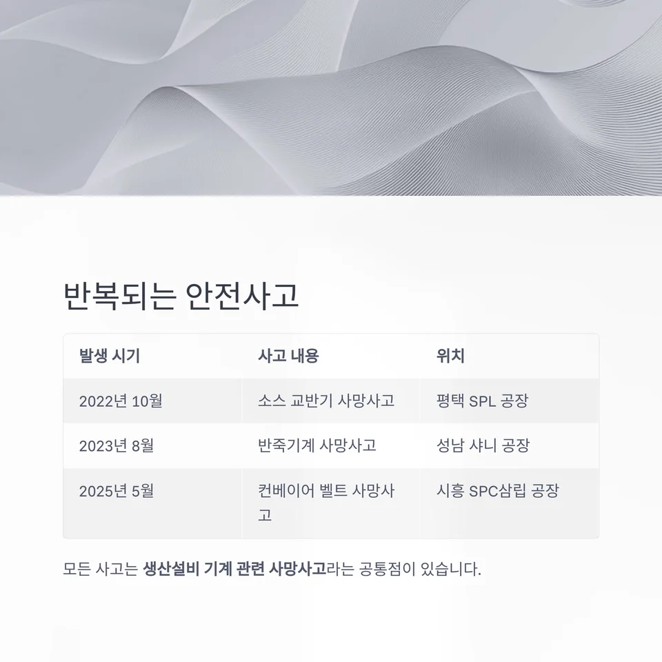 과거에도 SPC 계열사에서는 유사한 사고가 반복돼 왔던 만큼, 이번 사건은 단순한 '사고'가 아닌
