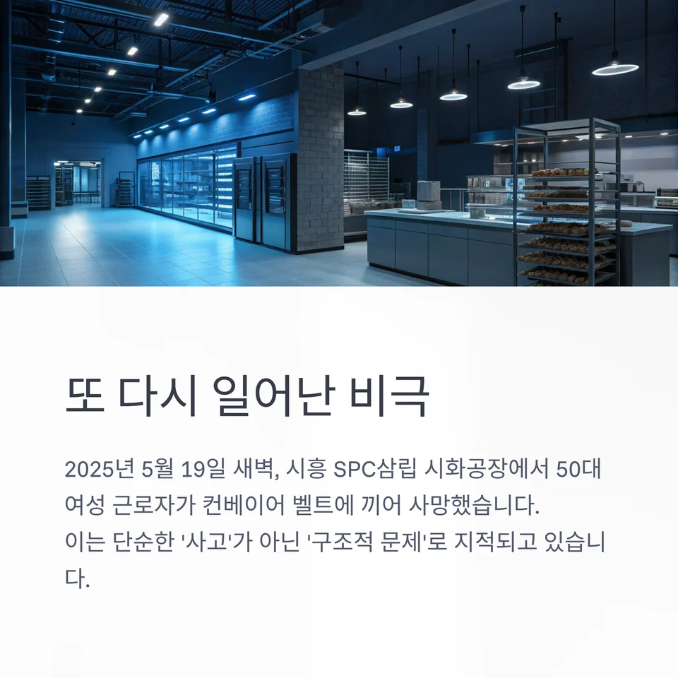 SPC삼립 시화공장의 사고는 단순한 '기계 오작동'이나 '실수'의 문제가 아닙니다.