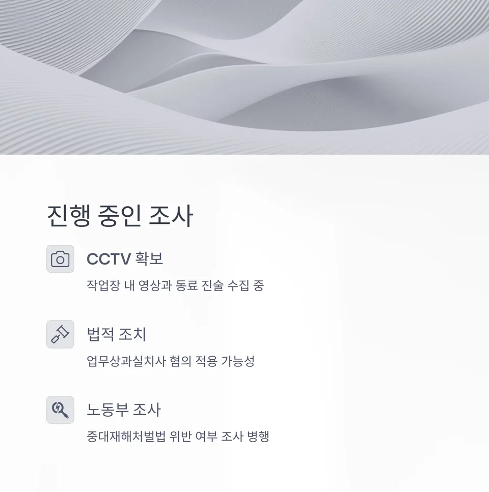 정확한 사고 원인과 안전 규정 위반 여부에 대한 조사를 진행 중입니다.