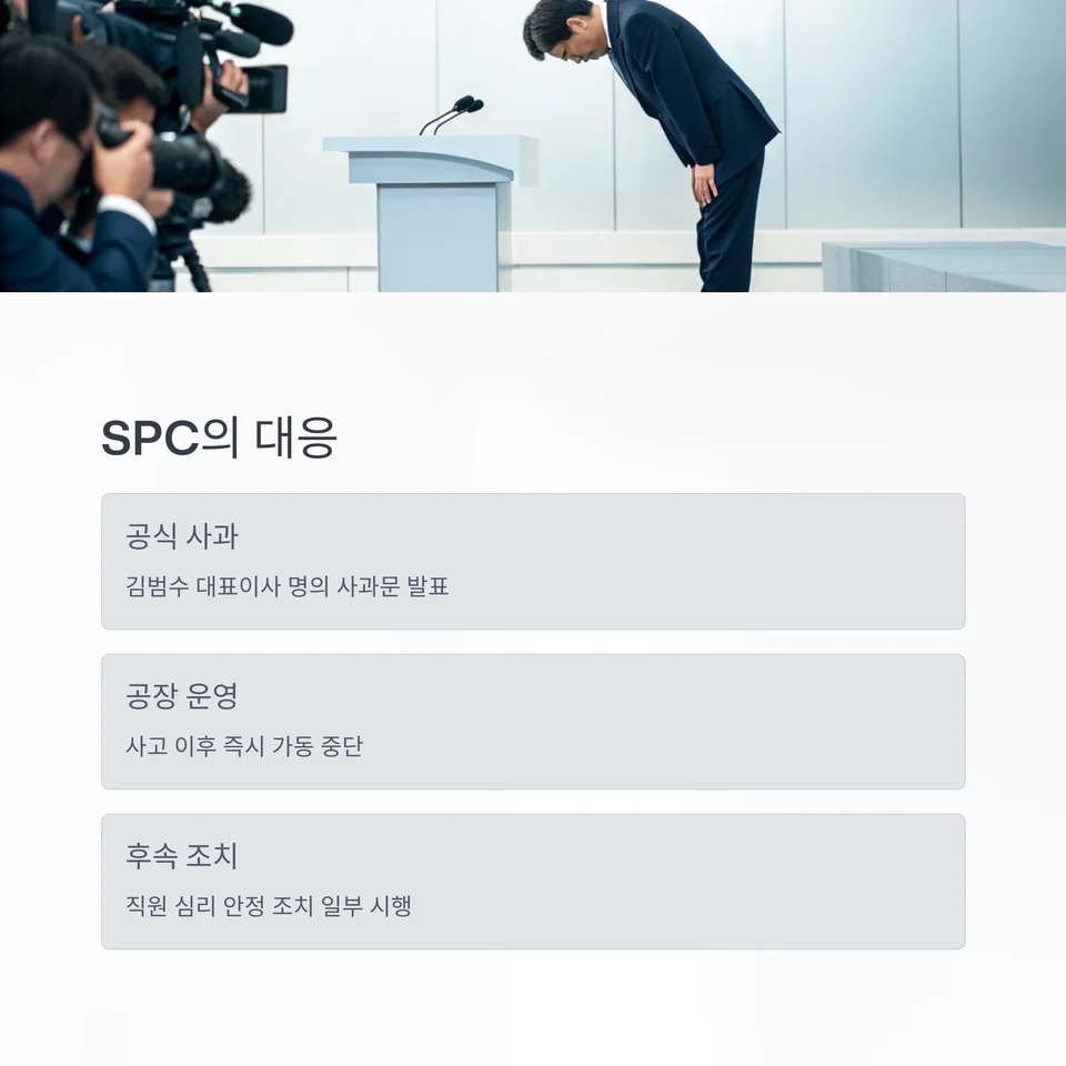 SPC삼립은 사고 발생 당일 김범수 대표이사 명의로 공식 사과문을 발표했습니다.
