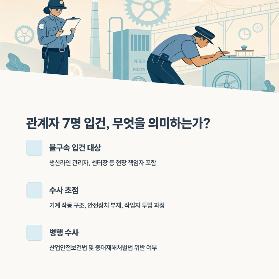 경찰은 특히 "기계 작업 중 필수 안전수칙이 지켜졌는지 여부"를 집중적으로 조사하고 있으며,